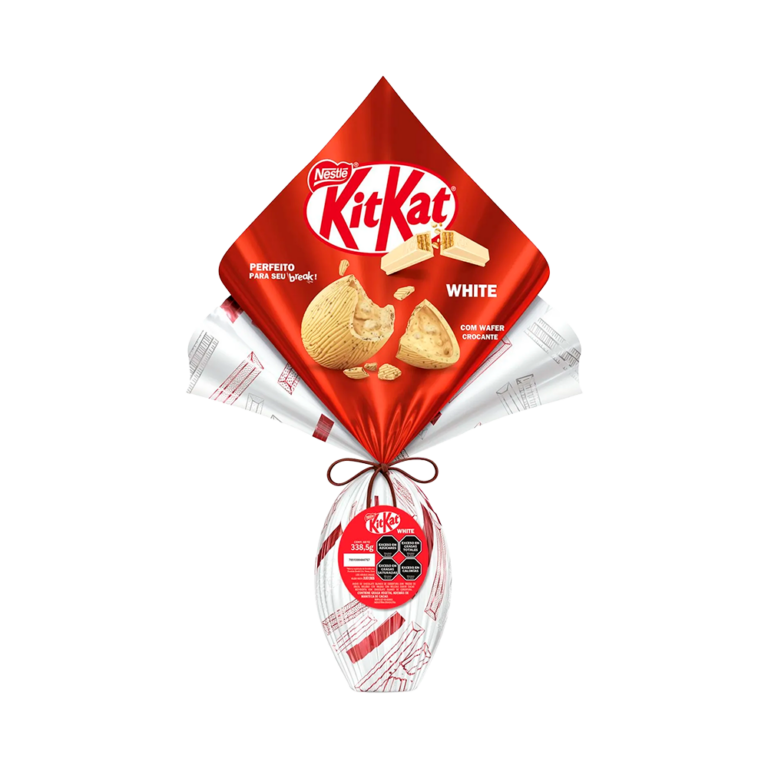 El Huevo de Pascua KitKat White ofrece una experiencia intensamente dulce y texturizada, caracterizada por una capa exterior de chocolate