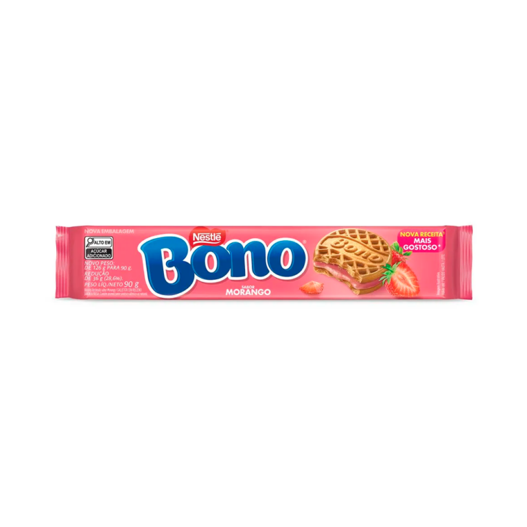 La galletita Bono Frutilla de Nestlé es una galleta dulce rellena con crema con sabor a frutilla, pensada como un
