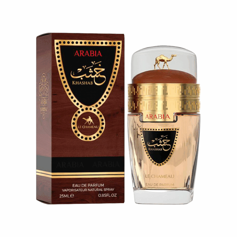 Sumérgete en la elegancia árabe con Arabia Khashab, ricas notas amaderadas se combinan con especias exóticas para una experiencia verdaderamente