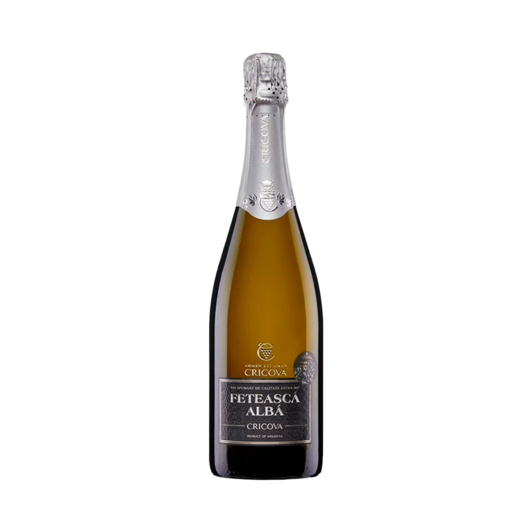 El Cricova Feteasca Alba Extra Seco es un vino espumante de Moldavia elaborado con la cepa nativa Feteasca Alba, caracterizado