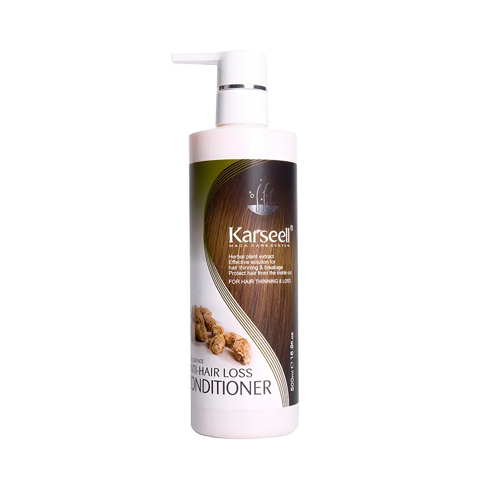 El Acondicionador Karseell Anti Caída es un tratamiento capilar diseñado específicamente para nutrir, fortalecer y ayudar a reducir la caída del cabello. Además, actúa sobre el cuero cabelludo favoreciendo su circulación, lo que promueve un crecimiento de cabello más fuerte y saludable.