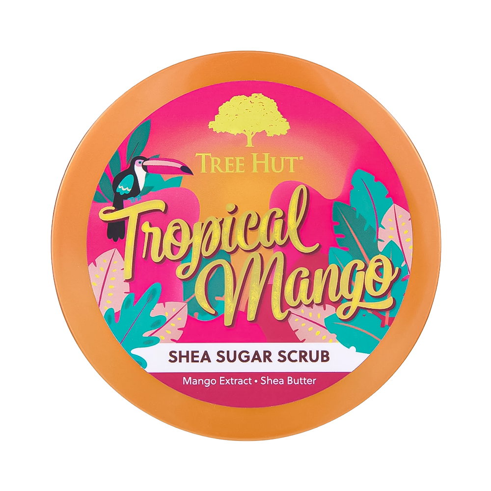 Mejora tu rutina de ducha, exfolia tu piel y luce una piel radiante con el Exfoliante Corporal de Azúcar Tree Hut con el delicioso aroma a Mango Tropical. Elaborado con azúcar, manteca de karité, puré de mango y una variedad de aceites naturales, como onagra, aguacate, macadamia, almendras dulces, cártamo y naranja.