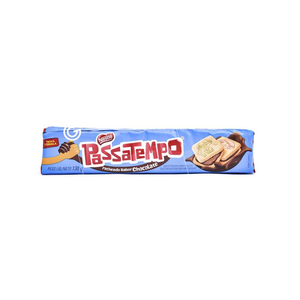 La galletita Nestlé Passatempo Rellena de Chocolate de 130 g es un biscocho dulce de origen brasileño producido por Nestlé, pensado como snack para toda la familia, especialmente popular entre niños y adolescentes por su sabor y textura.