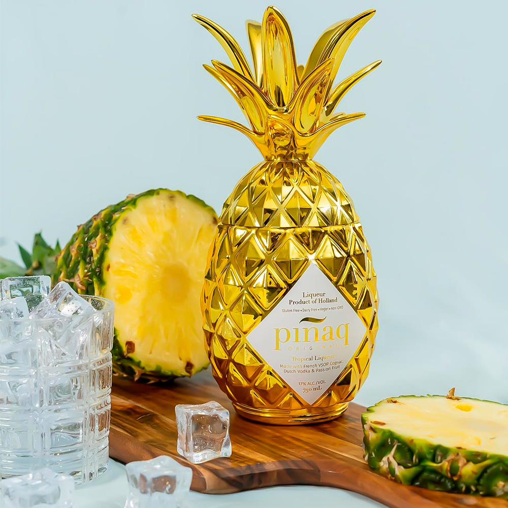 Piñaq Gold de Mburucuyá, un licor excepcional que fusiona el refinamiento del coñac francés VSOP con la intensidad seductora del maracuyá y la suavidad del vodka. Cada sorbo es un pasaporte al trópico, con un aroma cautivador que despliega toques de piña fresca, la dulzura de la miel y el caramelo, equilibrados por la acidez apasionada del maracuyá.