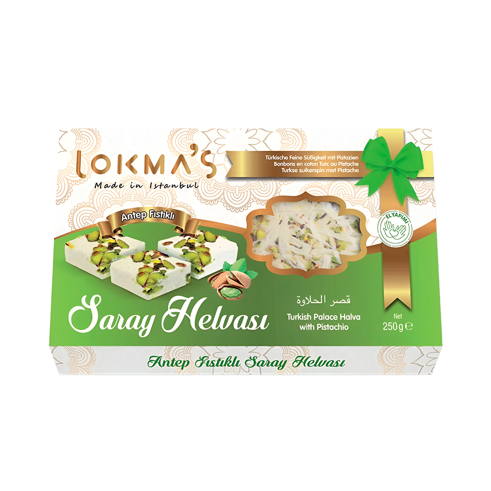 Disfruta de la experiencia sublime del Lokma’s Saray Helvası con Pistacho de Antep, un manjar turco de 250g. Este postre exclusivo es célebre por su textura etérea y desmenuzable, una maravilla de finísimas hebras azucaradas que se deshacen suavemente en la boca. Lokma’s enriquece esta fórmula clásica con abundantes trozos del aromático Pistacho de Antep, añadiendo un vibrante color verde y un delicioso crujido que contrasta a la perfección con la ligereza del halva. Es una dulzura artesanal, ideal para culminar una comida o compartir un momento de sofisticación turca.