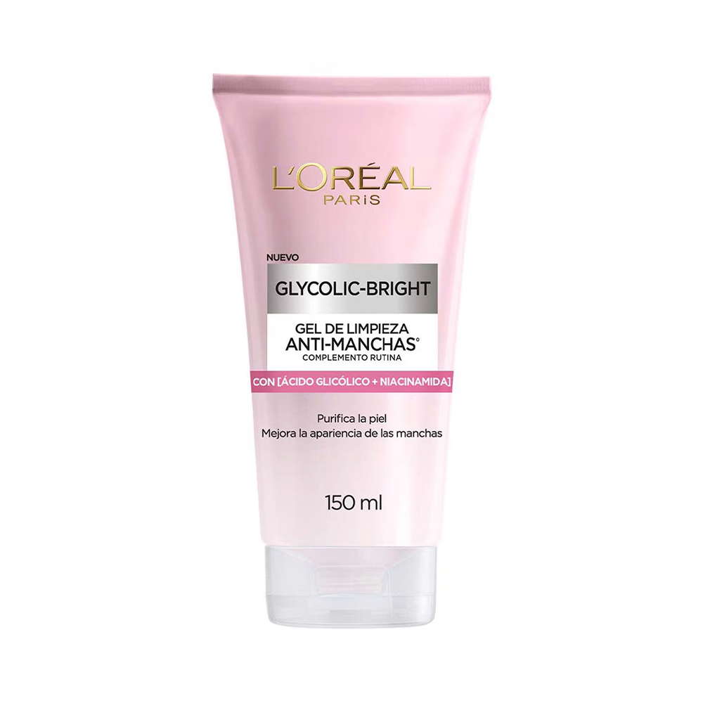 El Gel de Limpieza Facial L’Oréal Paris Glycolic Bright es un gel limpiador purificante con ácido glicólico y niacinamida diseñado para limpiar profundamente la piel del rostro, mejorar la textura y ayudar a disminuir la apariencia de manchas y tono desigual.