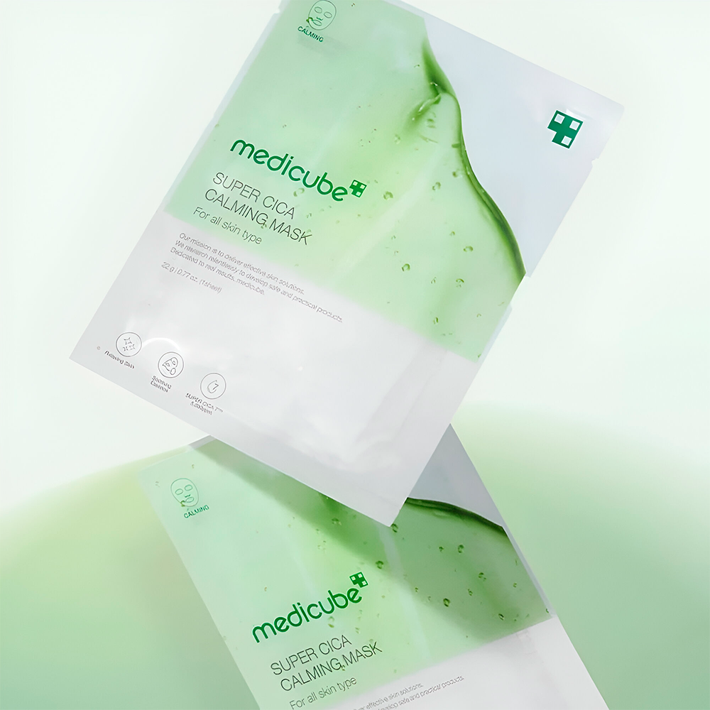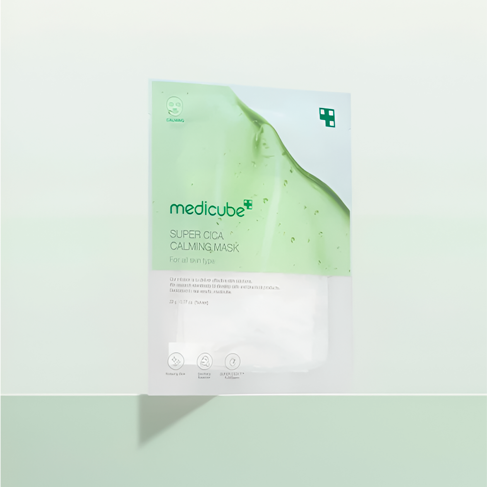 La Super Cica Calming Mask de Medicube es una mascarilla facial innovadora que combina centella asiática (cica) con ingredientes calmantes y reparadores para apaciguar, hidratar y fortalecer la piel en solo 15-20 minutos. Esta mascarilla está diseñada especialmente para pieles sensibles, irritadas o dañadas, devolviendo a la piel su equilibrio natural mientras la deja suave, fresca y radiante.