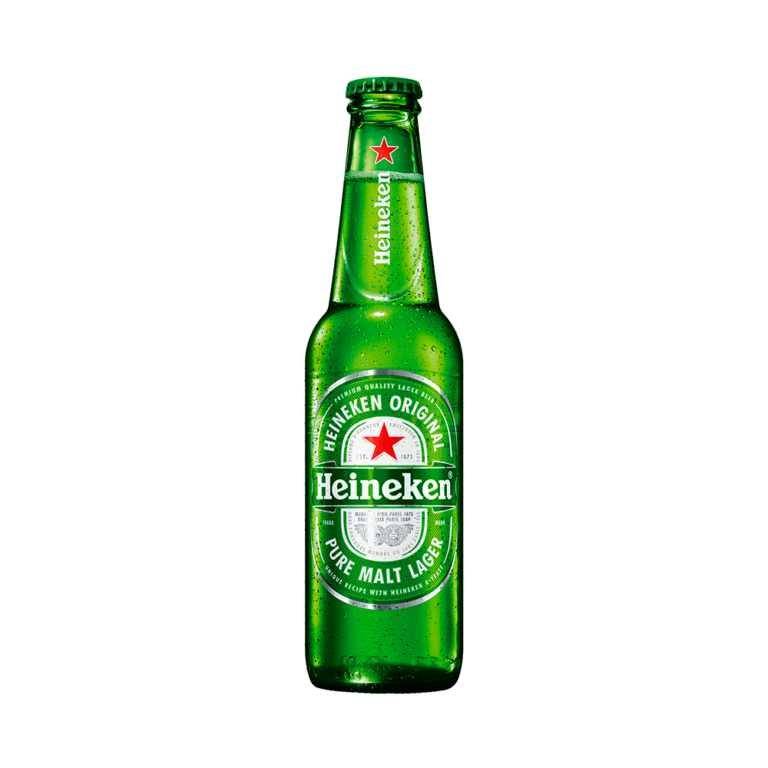 Esta es una Heineken Original, una cerveza tipo Lager de calidad premium presentada en su característica botella de vidrio verde