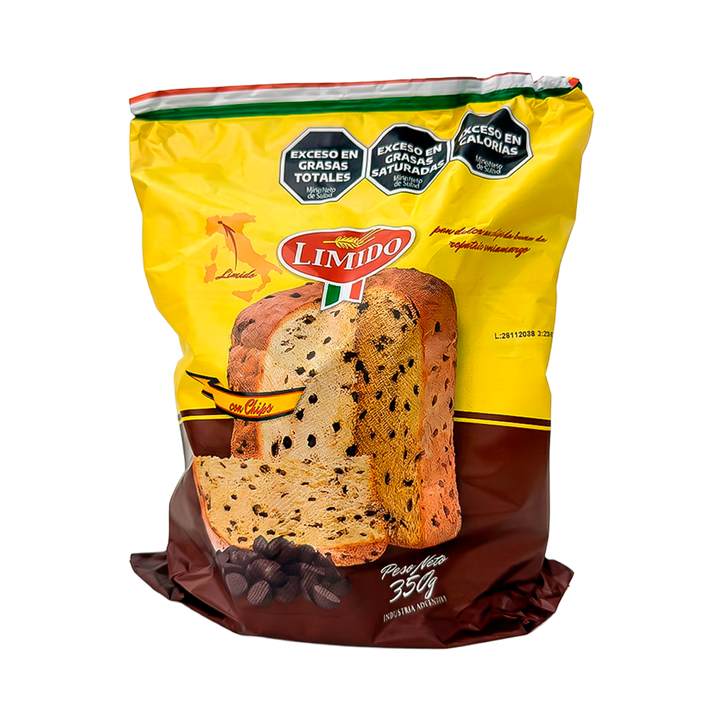 Pan dulce Limido de 350 g relleno de chips de chocolate. Delicioso para disfrutar en familia estas Navidades e ideal para regalar a quienes mas amas.