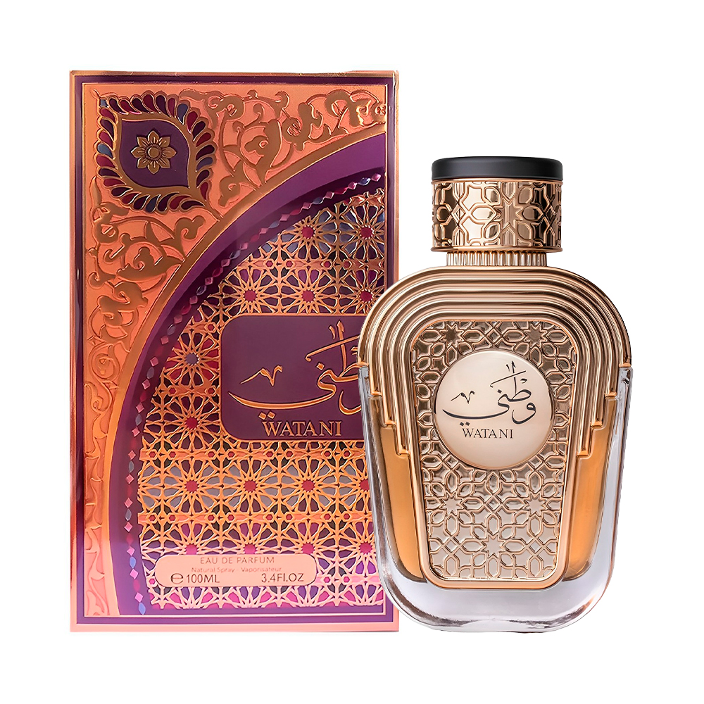 Watani Purple, la fragancia se abre con el aroma vibrante y refrescante de las frutas tropicales. El corazón revela una deliciosa mezcla de caramelo y notas florales, que añaden un toque dulce y romántico. Por último, la base se asienta en una combinación cálida y reconfortante de almizcle dulce y ámbar, dejando una impresión duradera de elegancia y calidez.