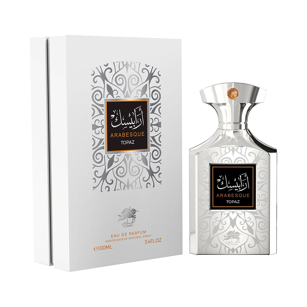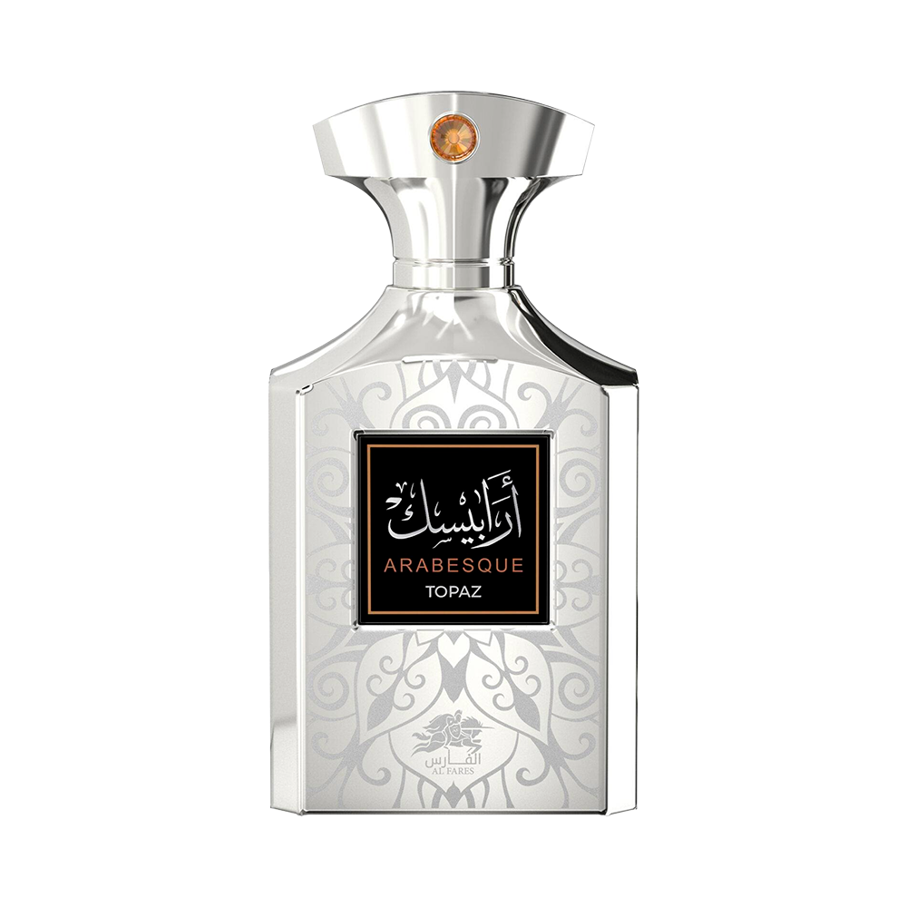 Al Fares Arabesque Topaz es una fragancia unisex de la familia olfativa oriental amaderada, producida por la casa Emper Perfumes. Se presenta en una concentración de Eau de Parfum, se caracteriza por una mezcla sofisticada que equilibra la dulzura tropical con notas ahumadas y terrosas.