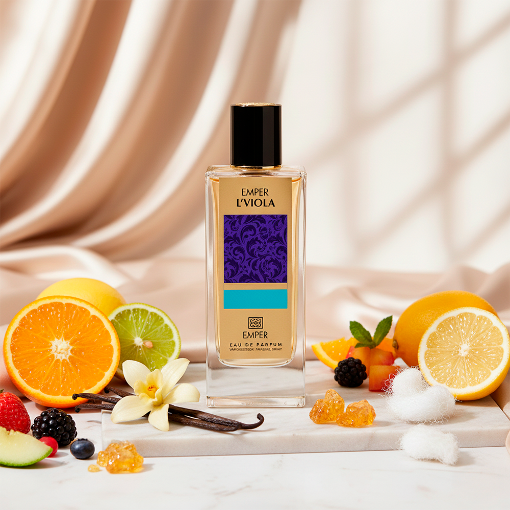 Emper L’viola estalla con cítricos vibrantes y frutas jugosas, asentándose en un abrazo cálido y cremoso de almizcle, vainilla y ámbar. Elegancia pura en cada aplicación.