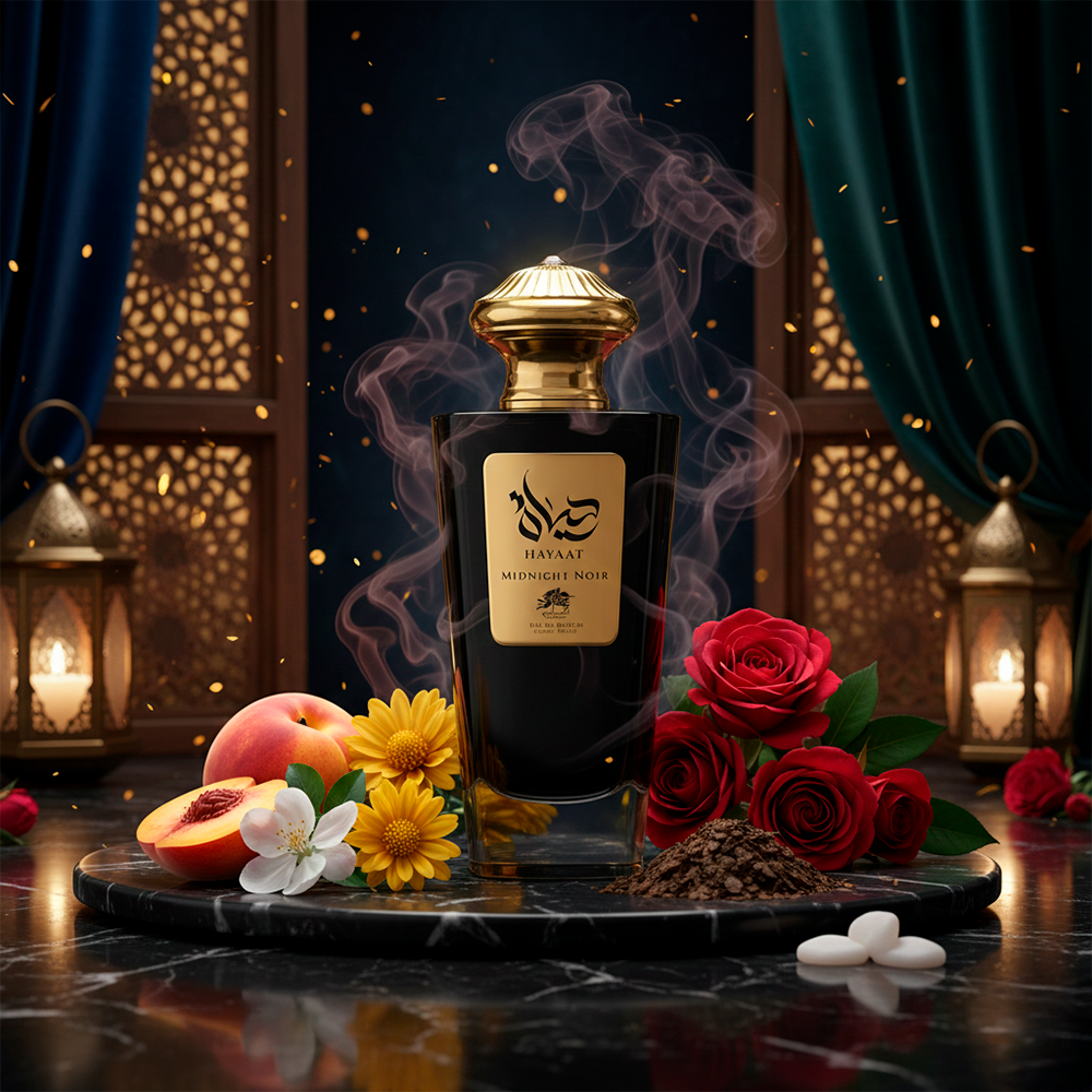 Hayaat Midnight Noir, donde las frescas notas frutales se fusionan con la elegancia floral para crear una fragancia cautivadora. Deja que la misteriosa base de almizcle y pachulí te lleve a un viaje de lujo con cada uso.