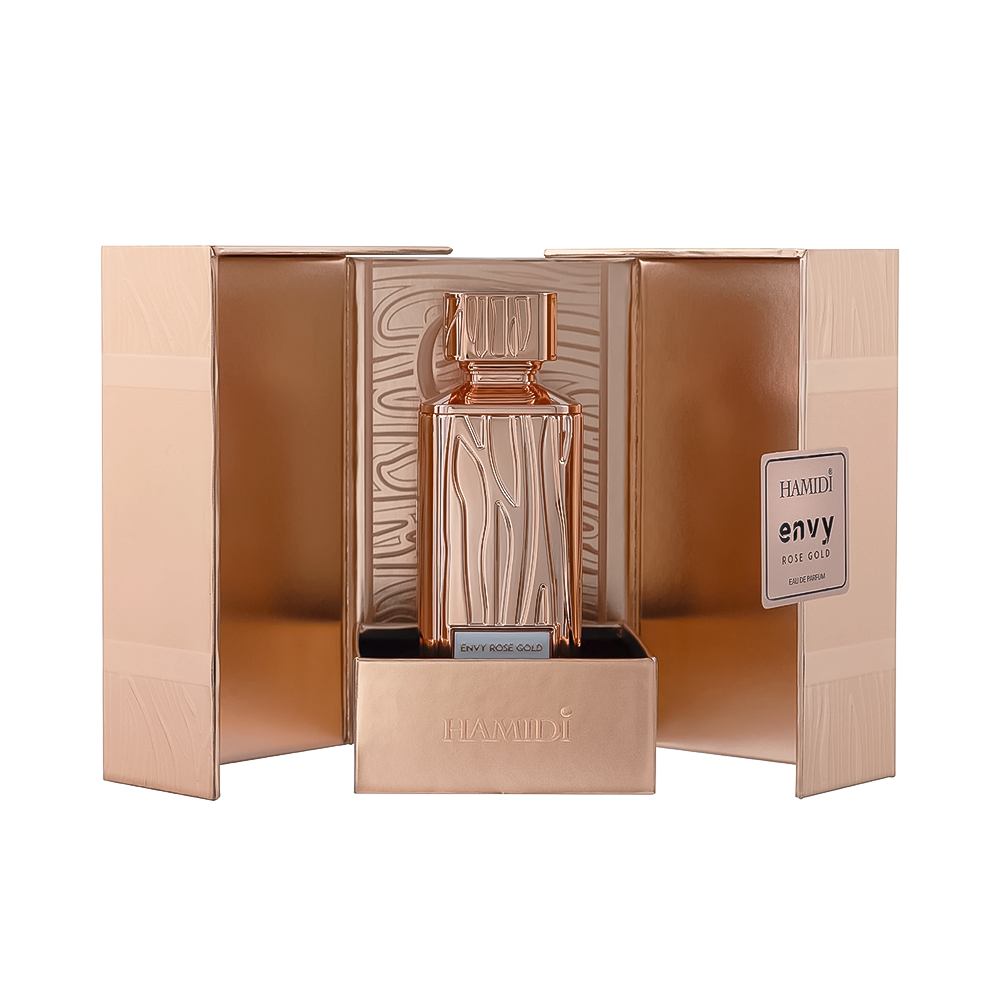 Envy Rose Gold es una fragancia audaz y embriagadora que irradia sofisticación moderna. Inicia con la cálida especia del azafrán, captando la atención al instante con su energía radiante. En el corazón, el suave almizcle aporta profundidad, creando un contraste equilibrado que se siente a la vez suave y potente. Envy Rose Gold está diseñada para quienes buscan destacar, ofreciendo un perfil aromático exótico y cautivador que impone presencia.