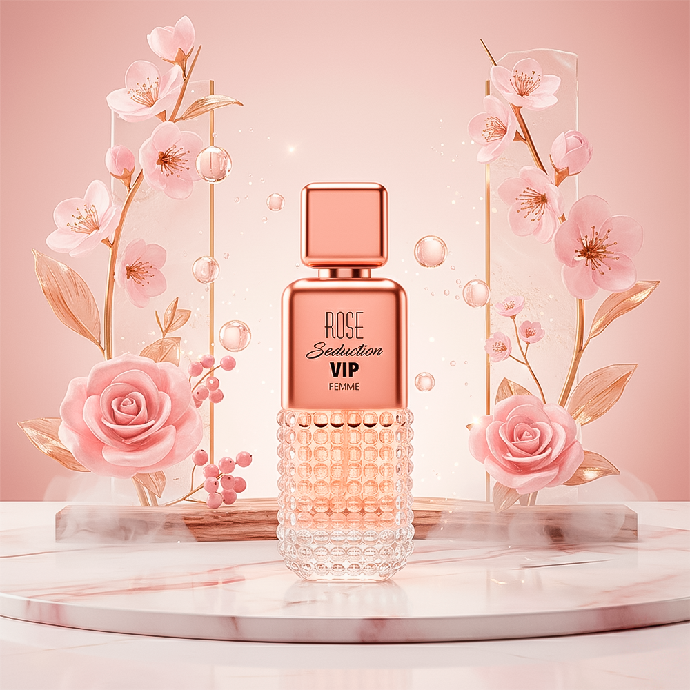 Explora la irresistible seducción de Rose Seduction Vip Pour Femme de Maison Alhambra. Esta exclusiva fragancia captura la esencia de la feminidad y la sofisticación con una combinación de notas refinadas. Las vibrantes notas de salida de champán rosado y pimienta rosa crean una salida chispeante y festiva, mientras que en el corazón del perfume, la flor de durazno y la rosa aportan un toque de dulzura y romance.