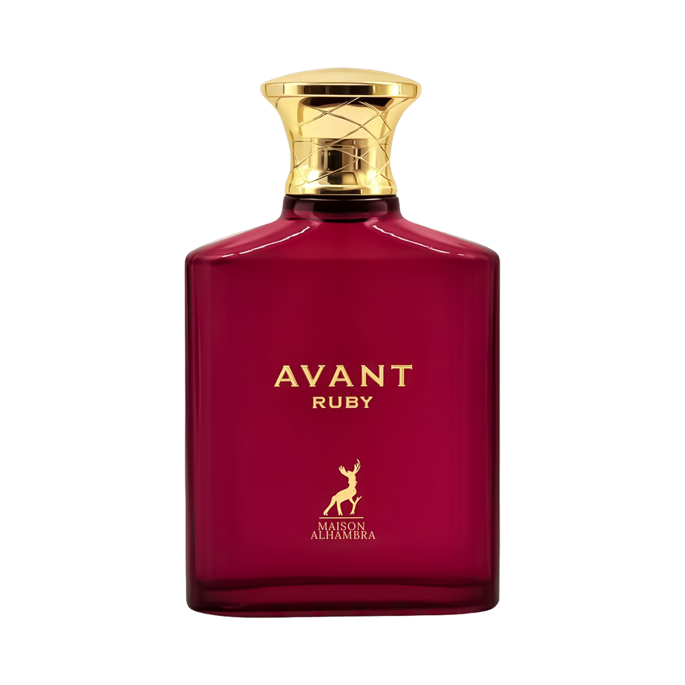 Maison Alhambra Avant Ruby es un perfume femenino de la familia olfativa Floral Oriental, es una fragancia elogiada por su aroma maduro, potente y cautivador, con una combinación de notas florales, frutales y especiadas, con una base amaderada y ambarina, ideal para quienes buscan un perfume sensual y llamativo.