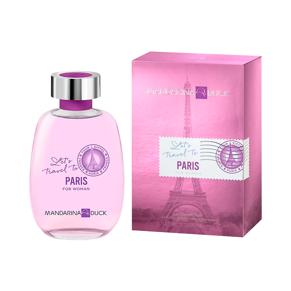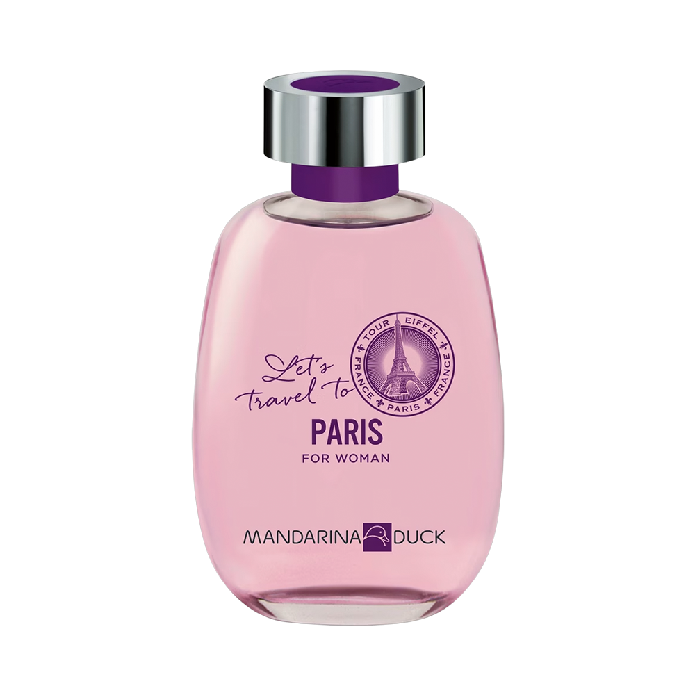 El Mandarina Duck Let’s Travel To Paris For Women es una fragancia de la familia olfativa Almizcle Floral Amaderado. Está diseñada para evocar un espíritu romántico, sensual y cosmopolita, inspirado en la atmósfera de los bistrós parisinos.
