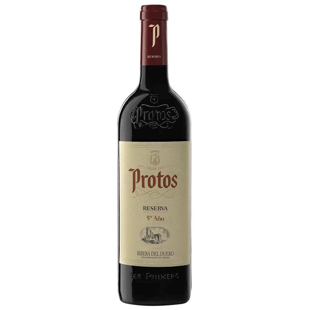 Protos Reserva es un vino tinto elegante de la Ribera del Duero, elaborado con uvas Tempranillo seleccionadas. Presenta aromas intensos a frutas maduras, especias y delicadas notas de madera. En boca es equilibrado, estructurado y suave, con taninos redondos y un final persistente.