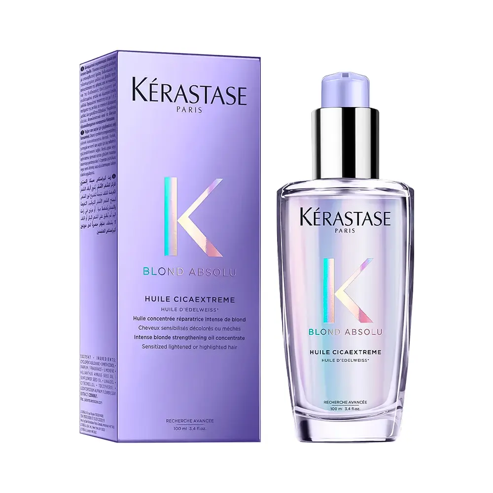 El aceite reutilizable Blonde Absolu Cicagloss ofrece una hidratación intensiva, fortalece las fibras dañadas y ayuda a restaurar el cabello debilitado por la decoloración, aportando brillo instantáneamente. Enriquecido con extracto de flor de edelweiss, una planta extremófila originaria de los Alpes Suizos a altitudes de hasta 3,000 metros sobre el nivel del mar, soporta fuertes vientos, alta radiación UV y bajas temperaturas. Un método de extracción suave conserva la potencia de sus ingredientes fortalecedores.