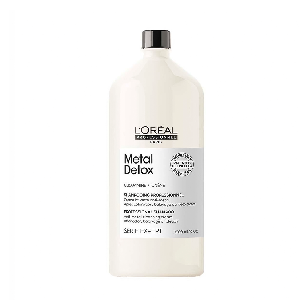 El Shampoo L’Oréal Professionnel Metal Detox 1,5 L es un champú profesional de la línea Serie Expert diseñado para desintoxicar el cabello y protegerlo contra los daños causados por partículas metálicas, algo habitual cuando lavas el cabello con agua del grifo o tras procesos químicos como coloración o decoloración.