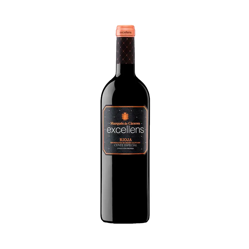El Vino Tinto Excellens Cuvée procedente de la bodega Marqués de Cáceres, con D.O. Rioja, elaborado a partir de una uva Tempranillo. Elaborado: Vendimia y elaboración de cada variedad por separado. De color rubí oscuro. Atractivo bouquet de frutos rojos con un toque de especias suaves aportado por su envejecimiento en roble. Rico en boca, con taninos maduros que ponen de relieve su estructura y elegancia. Un vino con carácter.