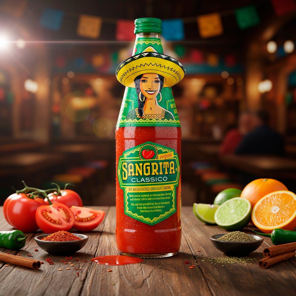 Descubre la Sangrita Clásica, ¡la bebida icónica de Alemania con un toque mexicano! Inspira con su mezcla única de jugo de tomate y naranja, aderezada con especias finas y un toque de limón. Helada, un auténtico placer, como base para cócteles refrescantes.
